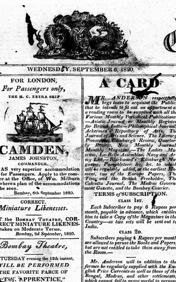 The Bombay Gazette (Weekly Edition), 20 September 1820