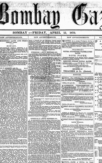 The Bombay Gazette, 15 April 1870