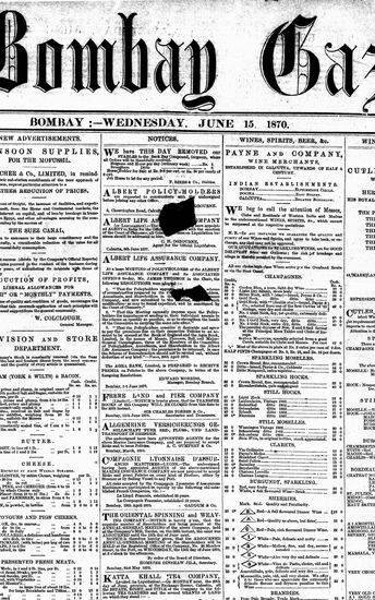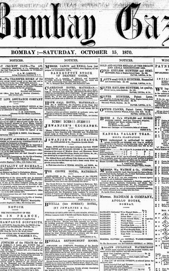 The Bombay Gazette, 15 October 1870