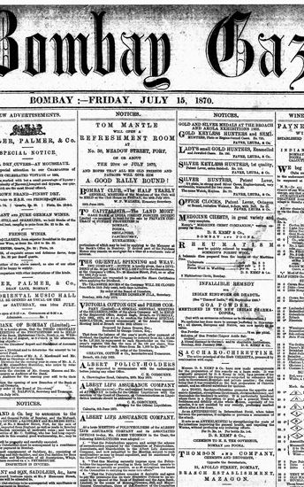 The Bombay Gazette, 15 July 1870
