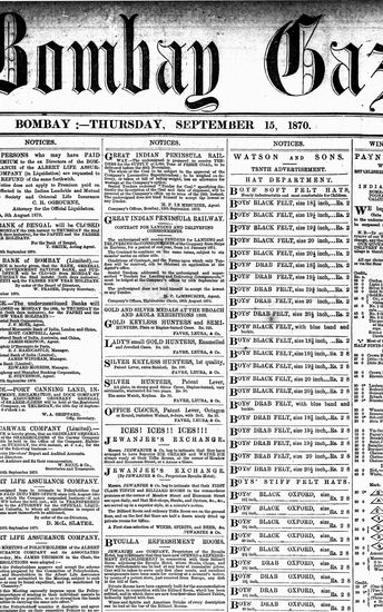 The Bombay Gazette, 15 September 1870