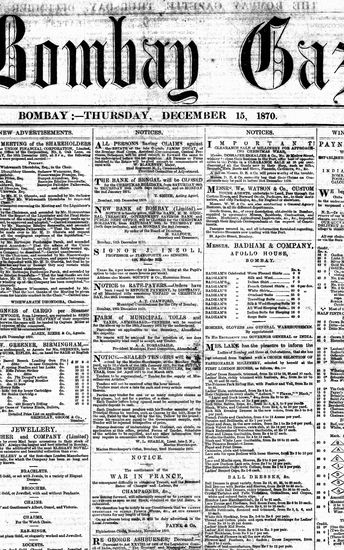 The Bombay Gazette, 15 December 1870