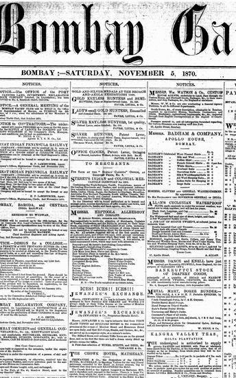 The Bombay Gazette, 5 November 1870