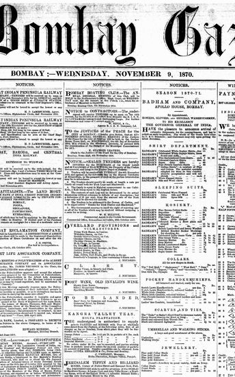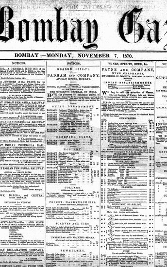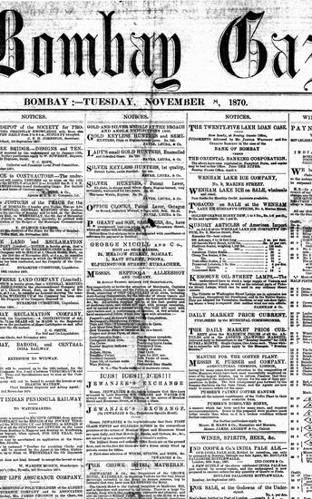 The Bombay Gazette, 9 November 1870