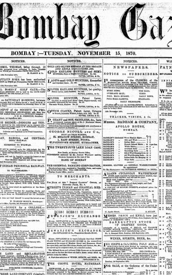 The Bombay Gazette, 15 November 1870