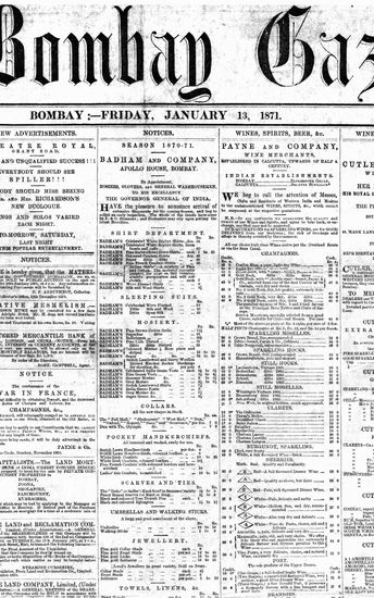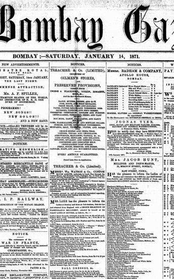The Bombay Gazette, 14 January 1871