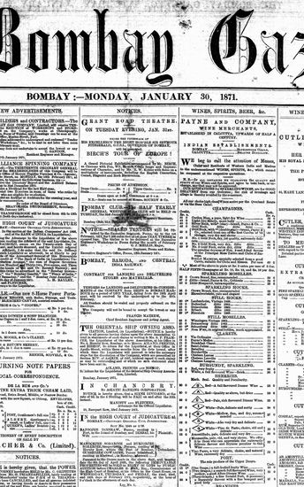 The Bombay Gazette, 30 January 1871