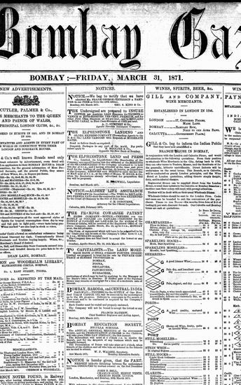 The Bombay Gazette, 31 March 1871