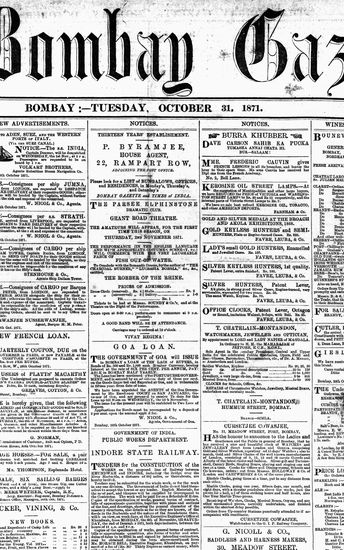 The Bombay Gazette, 31 October 1871