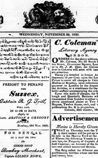 The Bombay Gazette (Weekly Edition), 22 November 1820