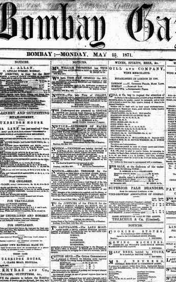 The Bombay Gazette, 15 May 1871
