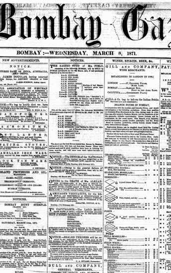The Bombay Gazette, 8 March 1871