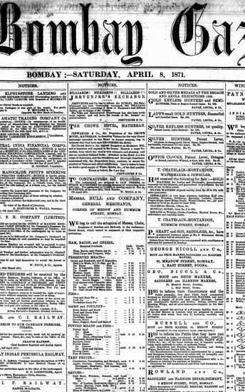 The Bombay Gazette, 8 April 1871