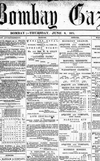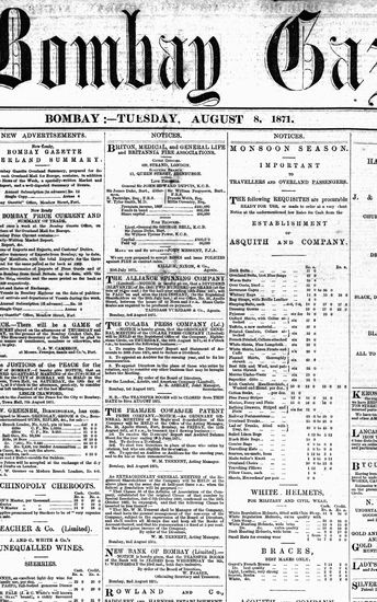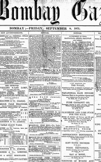 The Bombay Gazette, 8 September 1871