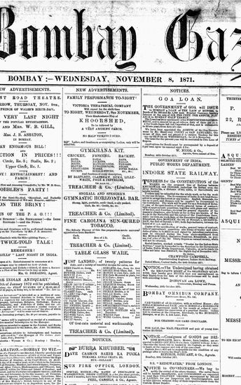 The Bombay Gazette, 8 November 1871