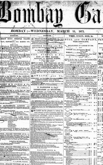 The Bombay Gazette, 15 March 1871