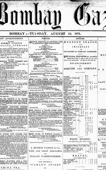 The Bombay Gazette, 15 August 1871