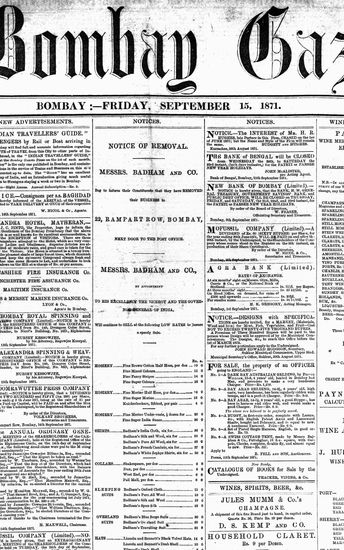 The Bombay Gazette, 15 September 1871