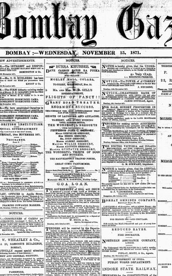 The Bombay Gazette, 15 November 1871