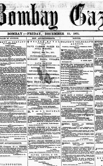 The Bombay Gazette, 15 December 1871