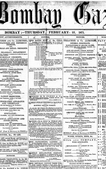 The Bombay Gazette, 23 February 1871