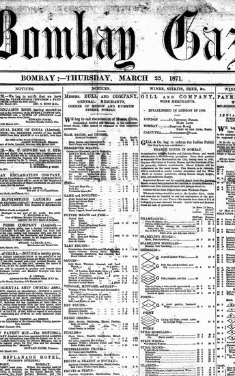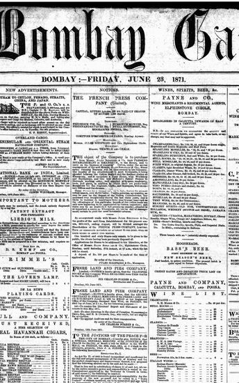 The Bombay Gazette, 23 October 1871
