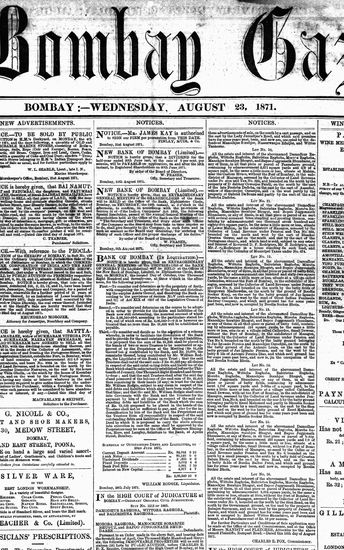 The Bombay Gazette, 23 August 1871