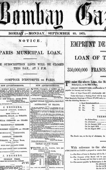 The Bombay Gazette, 25 September 1871