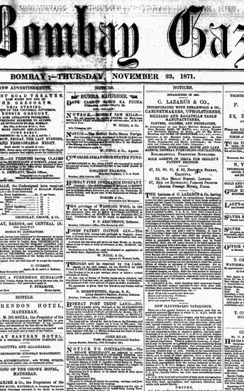 The Bombay Gazette, 23 November 1871