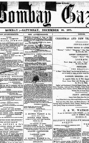 The Bombay Gazette, 23 December 1871