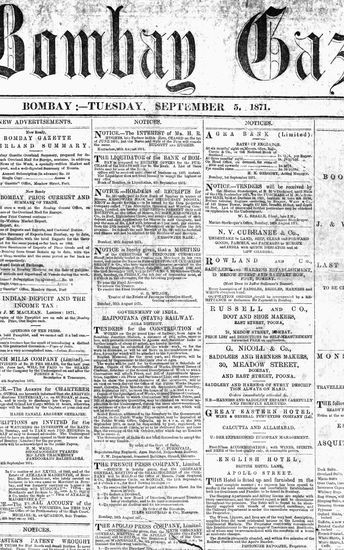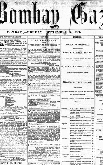 The Bombay Gazette, 4 September 1871