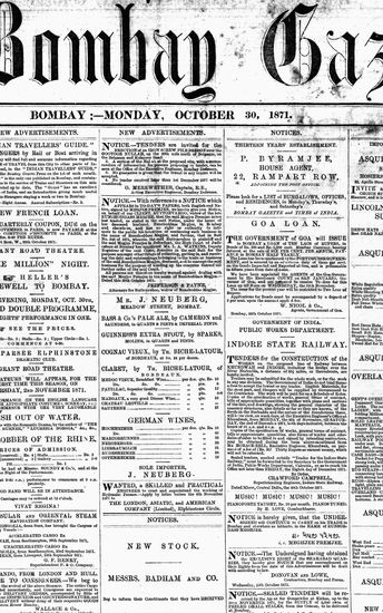 The Bombay Gazette, 30 October 1871