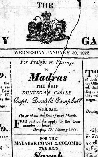 The Bombay Gazette (Weekly Edition), 3 April 1822