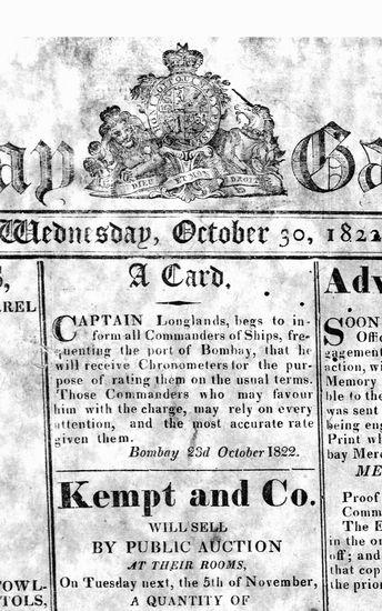 The Bombay Gazette (Weekly Edition), 30 October 1822