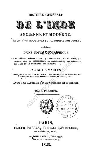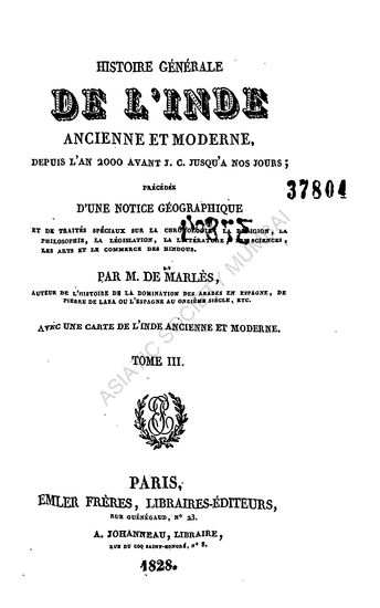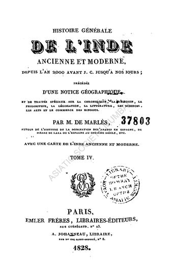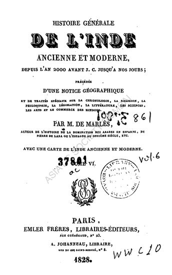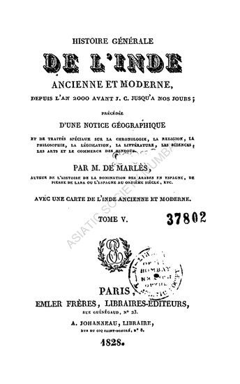 Histoire Generale de L' Inde Ancienne et Moderne Depuis L'an 2000 Avant J.C. Jusqua a nos Jours in 6 Vols. (Vol. II)