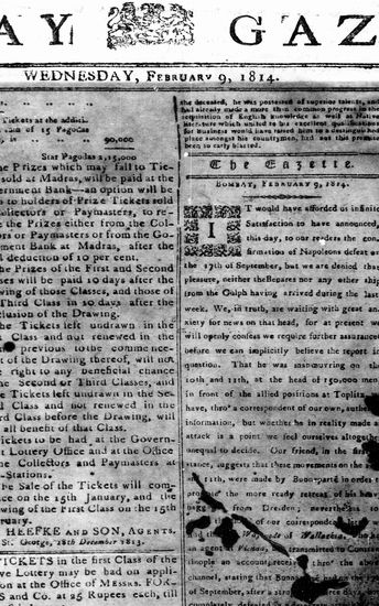 The Bombay Gazette, 9 February 1814