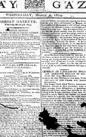The Bombay Gazette, 9 March 1814