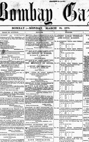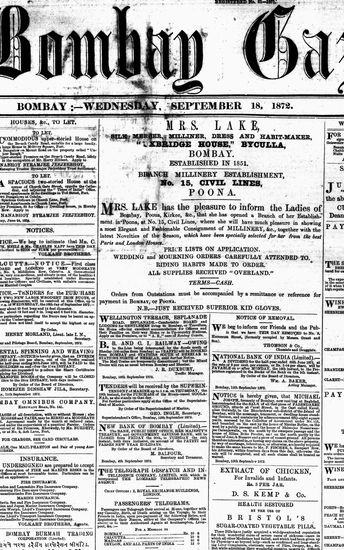 The Bombay Gazette, 18 September 1872