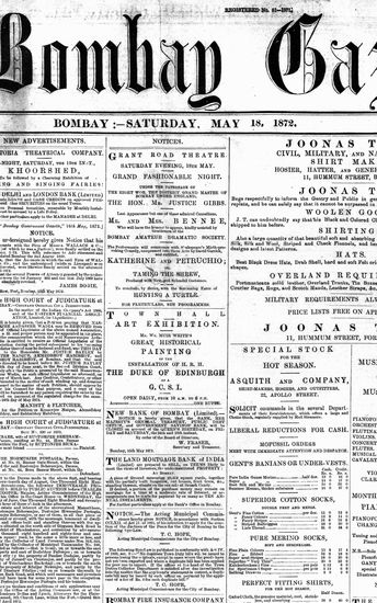 The Bombay Gazette, 18 May 1872