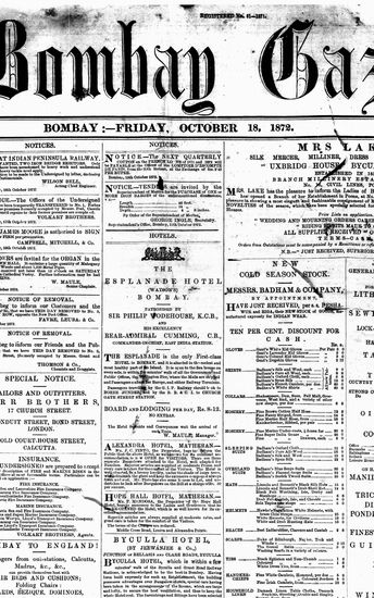 The Bombay Gazette, 18 October 1872