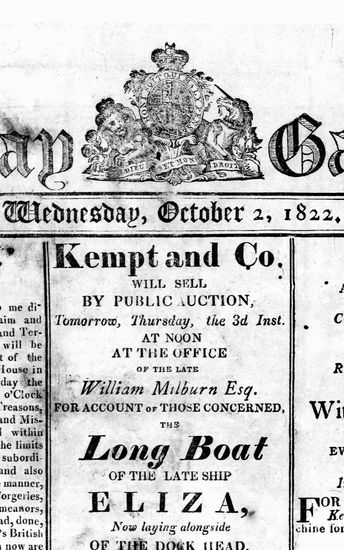 The Bombay Gazette, 30 October 1822
