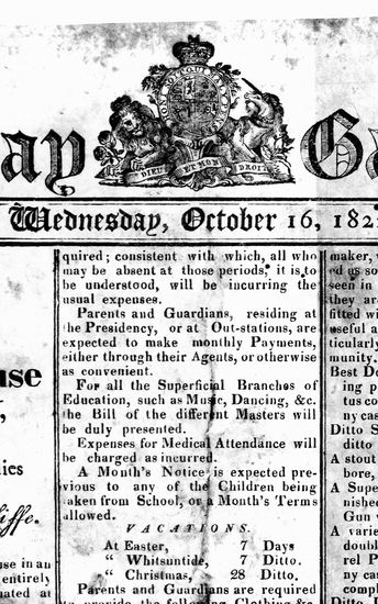 The Bombay Gazette, 16 October 1822
