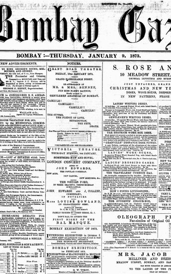 The Bombay Gazette, 9 January 1873