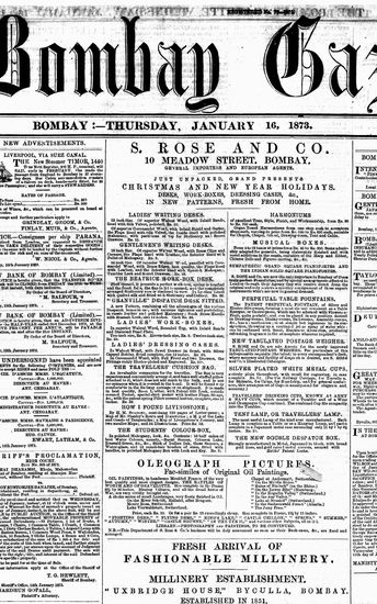 The Bombay Gazette, 2 January 1873