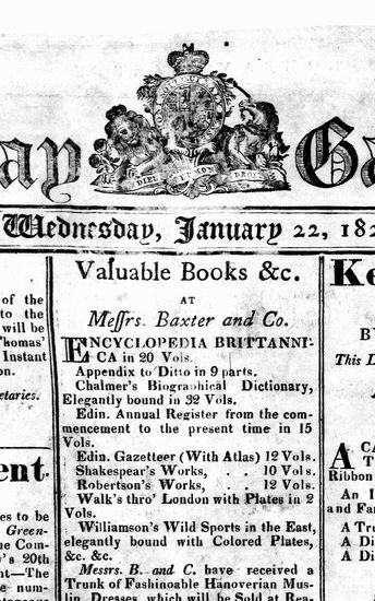The Bombay Gazette, 22 January 1823