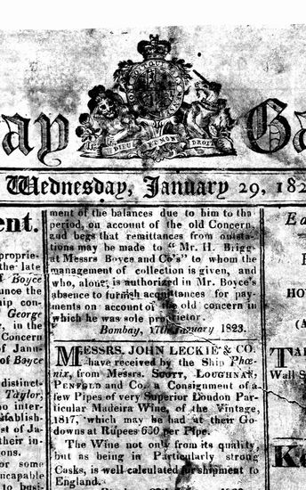 The Bombay Gazette, 8 October 1823