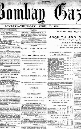 The Bombay Gazette, 17 April 1873