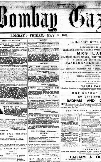 The Bombay Gazette, 2 May 1873