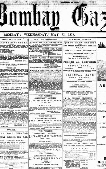 The Bombay Gazette, 21 May 1873