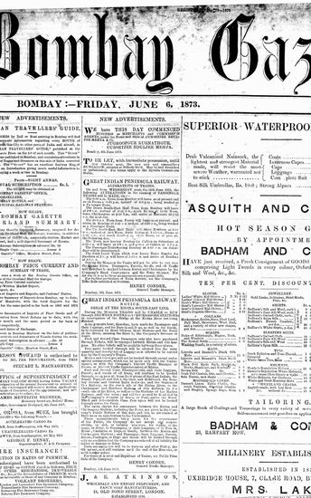The Bombay Gazette, 19 June 1873